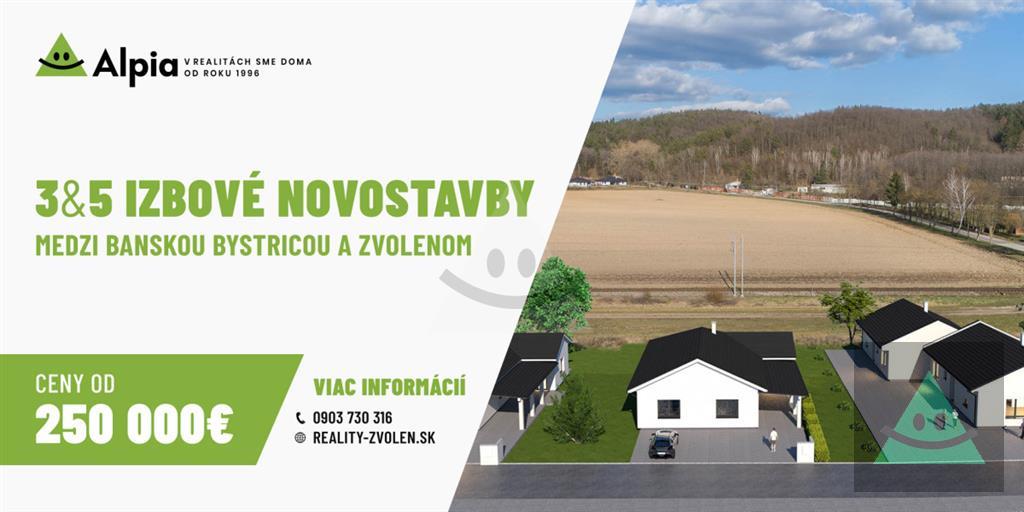 Ponúkame Vám novostavby v tichej ulici bez prechodnej dopravy - uzavretá komunita, pokoj a mestá na dosah. Zvolen aj Banská Bystrica sú 10-15 min autom, v obci vybavíte bežný deň a voľný čas spríjemní blízky Sliač či cyklotrasa ZV-BB. Exteriér domu je v modernom čierno-bielom dizajne a autá si zaparkujete priamo na vašom parkovisku pred domom na spevnených plochách.Dom realizuje overený lokálny zhotoviteľ; na ulici už stoja hotové domy, kvalitu si viete pozrieť naživo a overiť referencie priamo u susedov. Predávame ako holodom s možnosťou dokončenia do štandardu alebo na kľúč - materiály a detaily vyberieme spolu; ak treba rozumné úpravy, zapojíme architekta a dotiahneme dispozíciu do absolútnej dokonalosti pre vaše potreby.Veľa ľudí sa nás pýta na vlakovú trať, ktorá vedie poza pozemky. Trať je bez zastávky pri projekte; moderné osobné súpravy sú tiché a nočná prevádzka je aj tak minimálna až žiadna. Pre milovníkov vlakov sa týmto ponúka ideálne miesto na sedenie a sledovanie a kto preferuje viac clony, zvolí živý plot; v interiéri komfort držia kvalitné okná. Financovanie flexibilné: možné hypotekárnym úverom, platby aj etapovo podľa míľnikov výstavby; konkrétne možnosti si spolu prejdeme pri osobnom stretnutí.