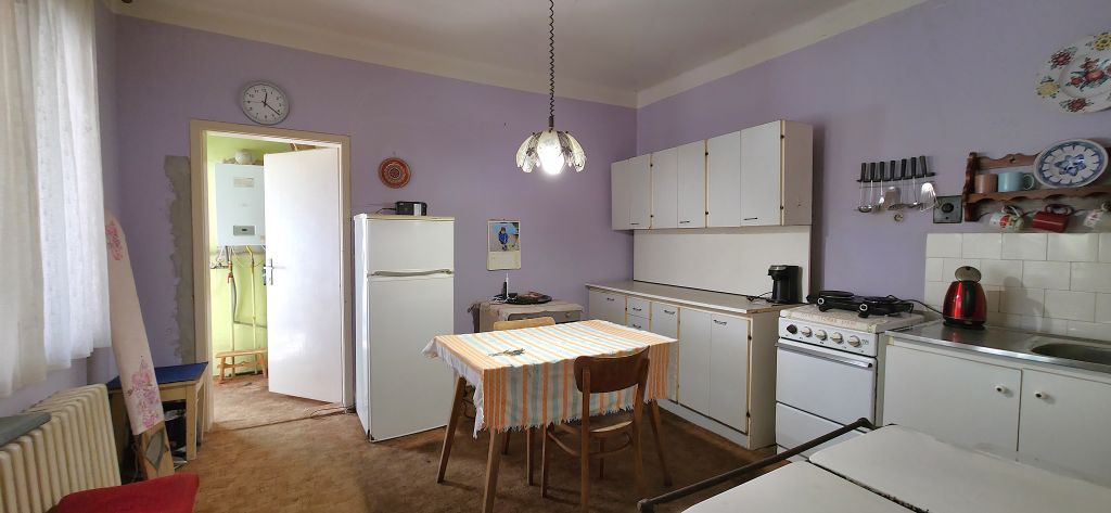 • Ohrev vody a vykurovanie: Plynový kotol a liatinové radiátory.