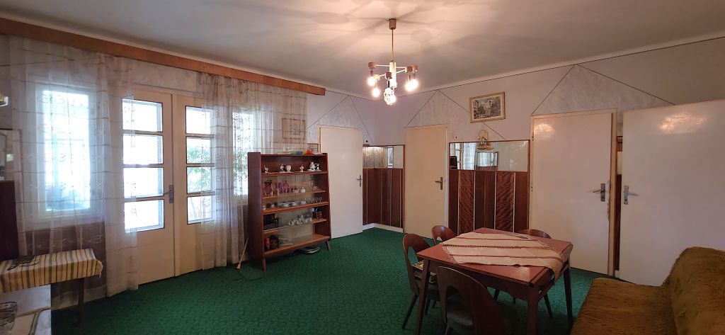 • Podlahy: V celom dome sú betónové podlahy. V izbách sú na tomto pevnom betónovom základe položené pôvodné drevené parkety, v ostatných miestnostiach je dlažba.