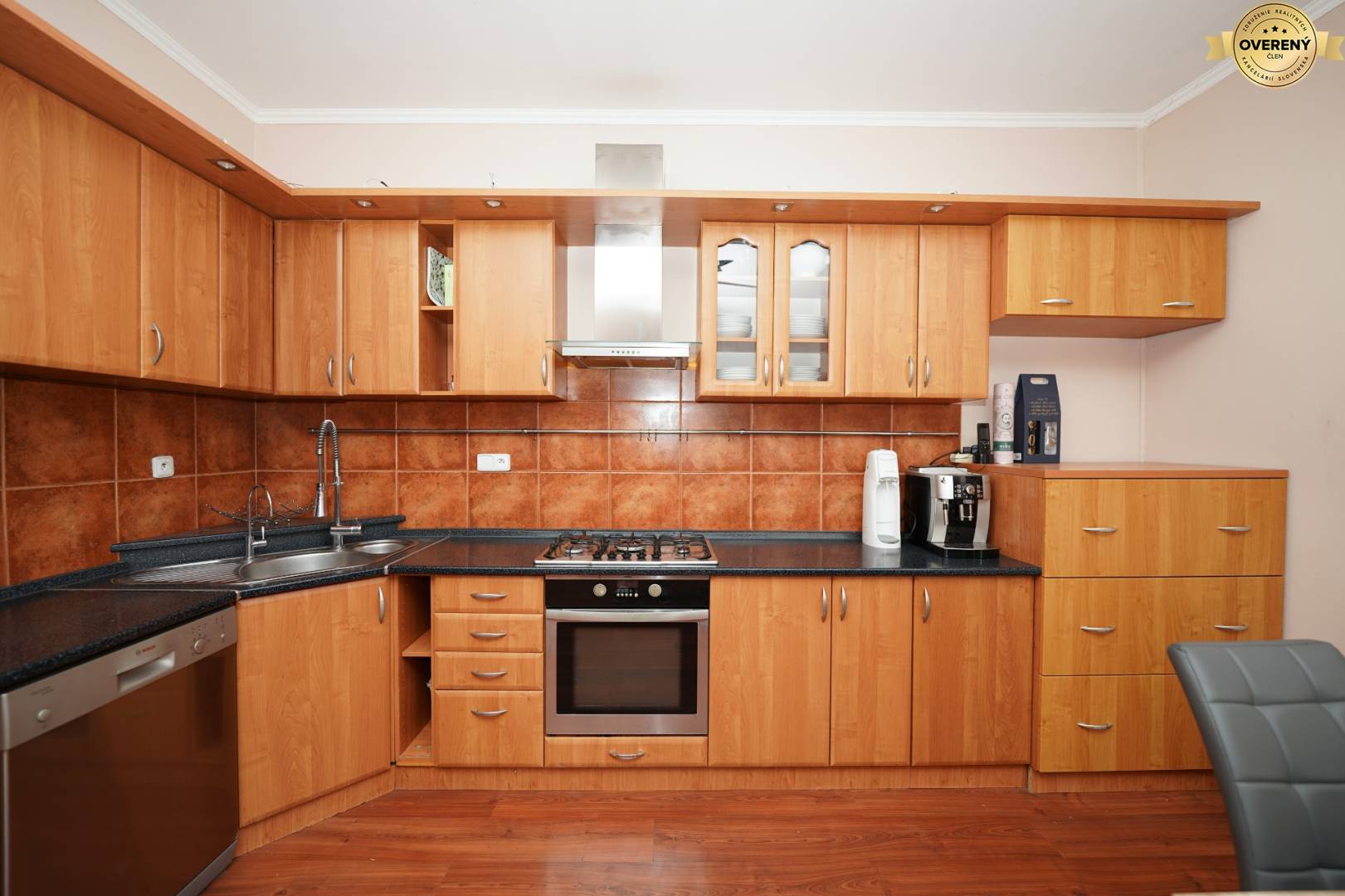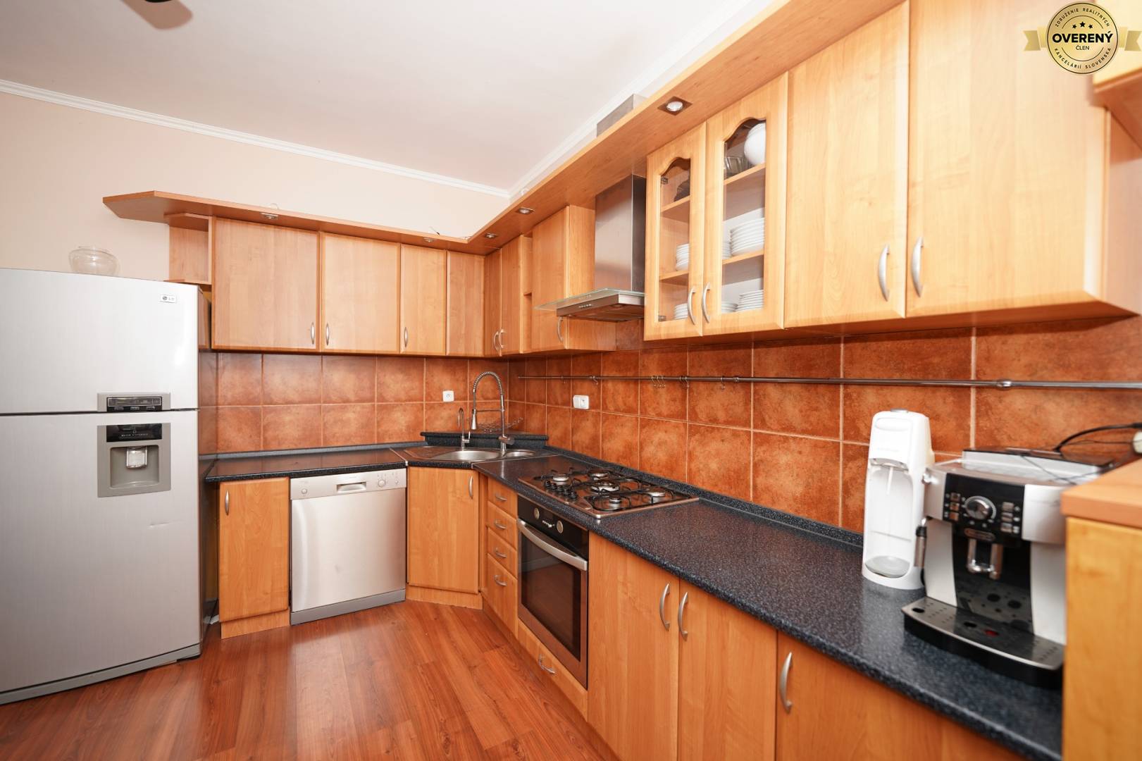 Vybavenie: Súčasťou kuchyne je umývačka riadu, elektrická rúra, plynový sporák, digestor, mikrovlnná rúra, filtračné zariadenie na vodu Aquatrend, chladnička s výborníkom ľadu. Rodinný dom je postavený z tehly, sedlová strecha, klimatizačná jednotka v dome, plastové eurookná, sieťky proti hmyzu. Záhrada disponuje prístreškom pre auto. VIS (voda, elektrina, plyn, kanalizácia). Výhodou je vŕtaná studňa s čerpadlom (16 m).