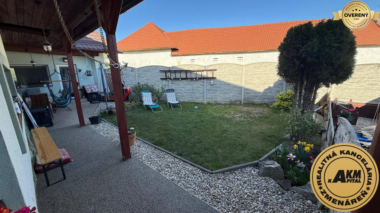 Komfort bývania dopĺňa parkovanie pre dve autá, prístrešok na auto a samostatný priestor na náradie a záhradné potreby. Veľkým benefitom je aj možnosť dobudovania ďalších izieb v podkroví, vďaka čomu má dom výborný potenciál do budúcnosti.