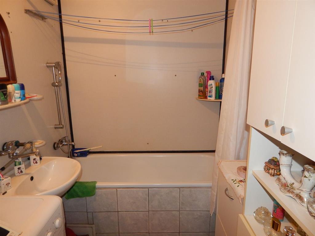 Pôvodné umakartové jadro s klasickou vaňou, umývadlom a oddelené WC.