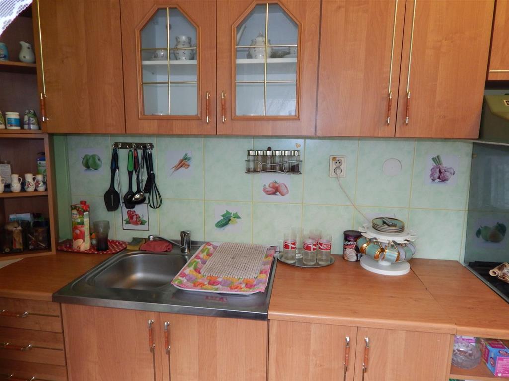 Vo výbave bytu zostáva pôvodná kuchynská linka so sporákom a digestorom.