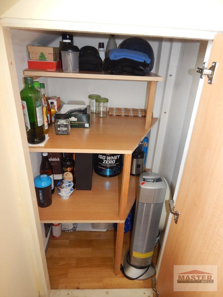Výbavou bytu je kuchynská linka na mieru so sporákom, digestor a chladnička kombinovaná s mrazničkou. V kuchyni sa nachádza potravinová skriňa -nahradí špajzu.