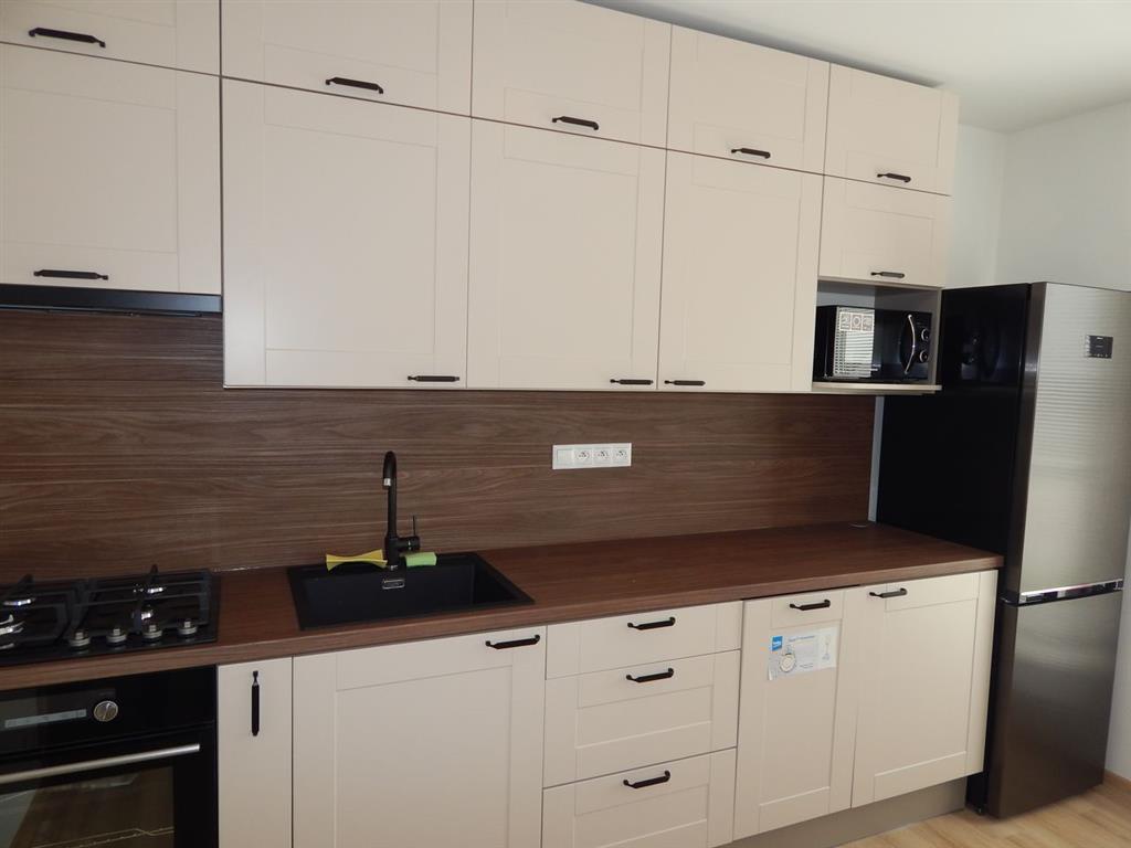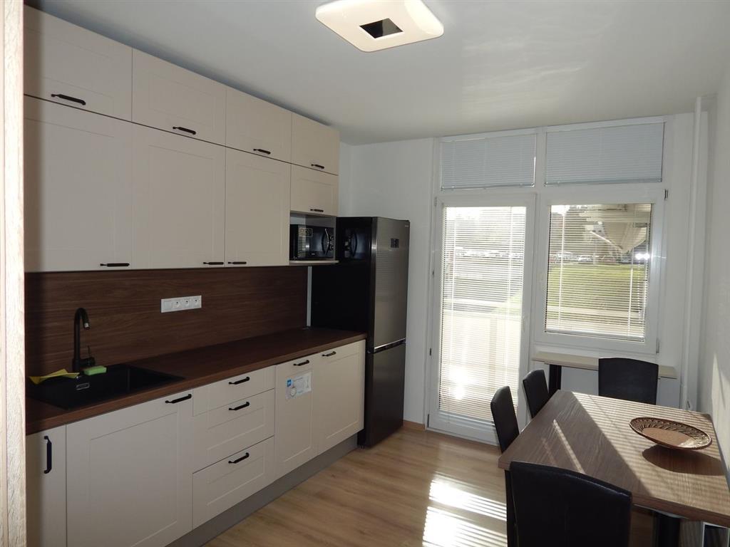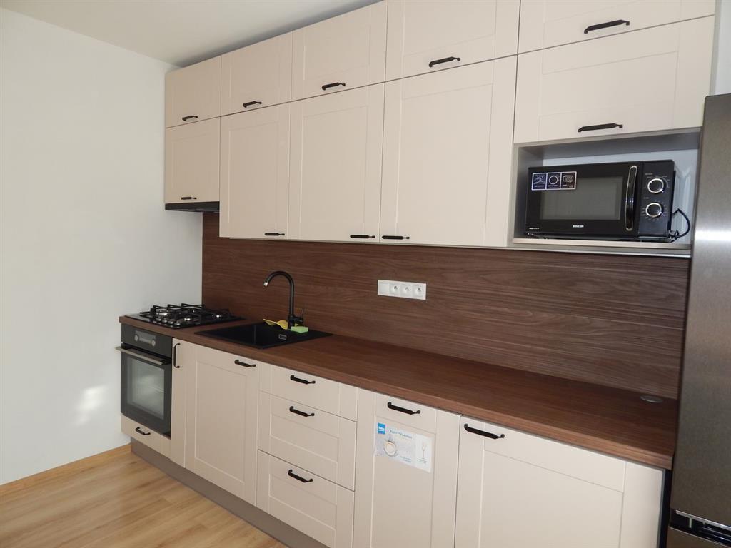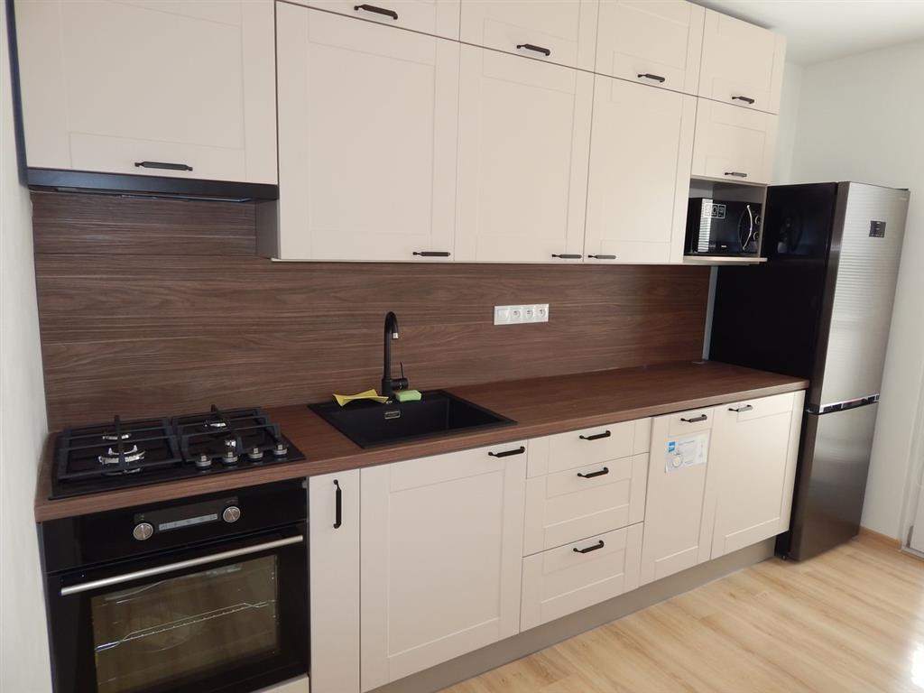 - Výbavou bytu je moderná kuchynská linka na mieru s nerezovým drezom, s plynovým sporákom a elektrickou rúrou, digestorom, chladnička v kombinácií s mrazničkou, mikrovlnka, umývačka riadu zn. BEKO,