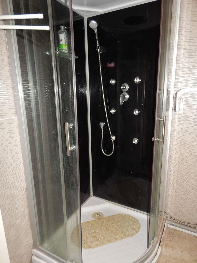 Umakartové jadro so sprchovacím kútom, umývadlom, zrkadlom a oddelené WC.