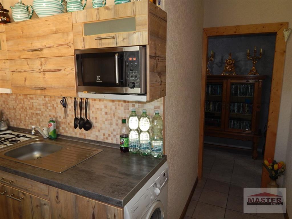 - Výbavou bytu je kuchynská linka na mieru so zabudovanými spotrebičmi: kombinovaný sporák, digestor, mikrovlnka, práčka, chladnička, kuchynský stôl + stoličky.