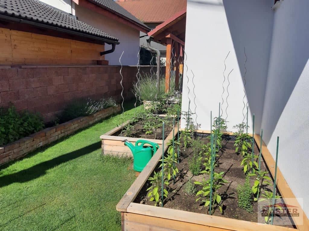 Záhrada je zatrávnená, udržiavaná, s vysadenými ovocnými drevinami a pozemok lemujú vysadené vysoké tuje.
