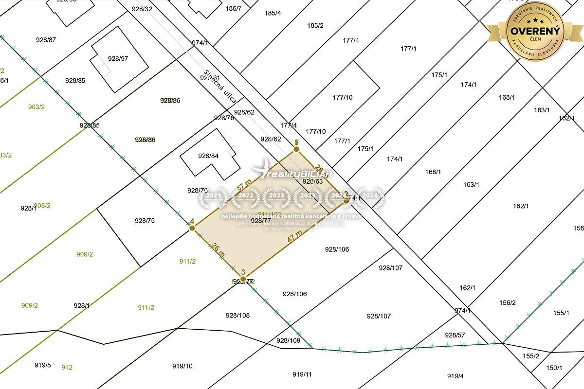 Pozemok s výmerou 1212 m² a rozmermi približne 26 × 47 m sa nachádza v pokojnej okrajovej časti obce na Slnečnej ulici. Je rovinatý a vďaka svojim ideálnym proporciám poskytuje široké možnosti využitia – či už na výstavbu priestranného rodinného domu, alebo dvojdomu.