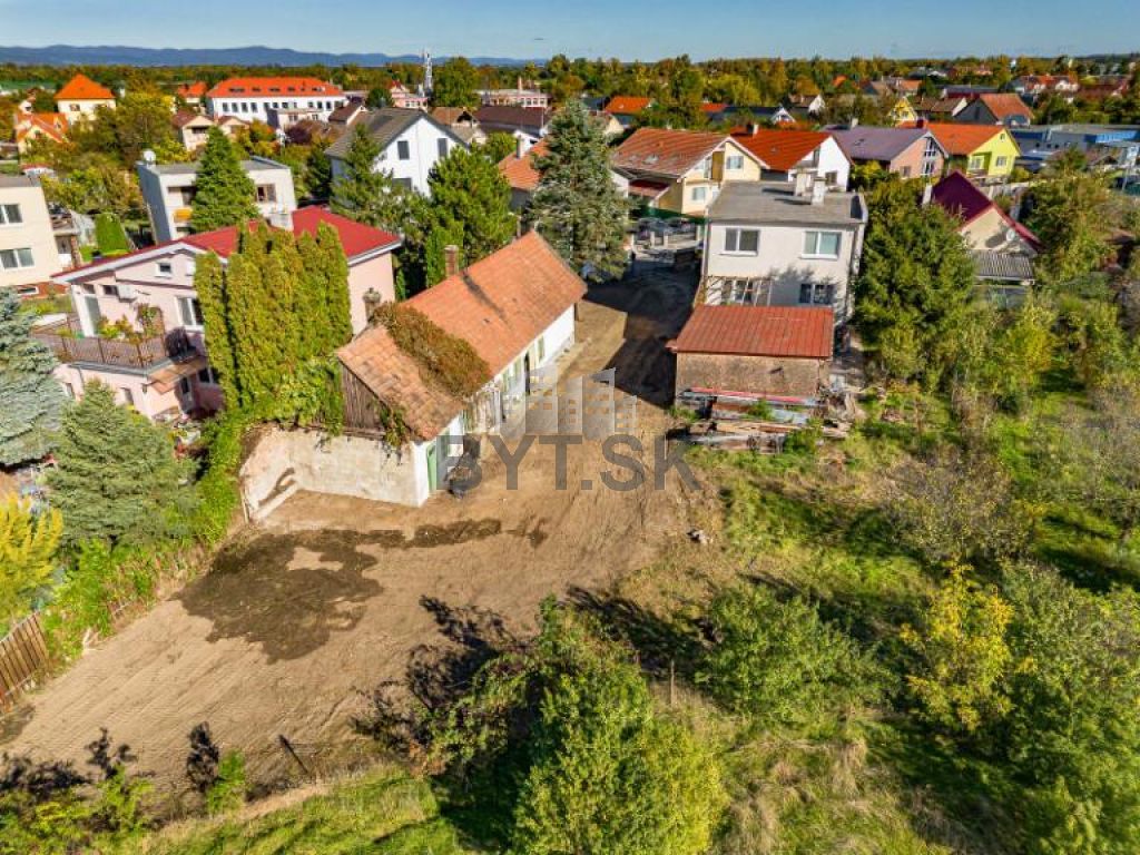 Na hranici pozemku sa nachádza starší rodinný dom, ktorý je vhodný na zbúranie.