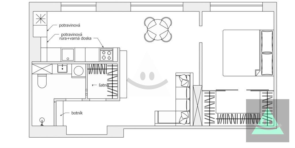 - Druh: 2 izbový byt