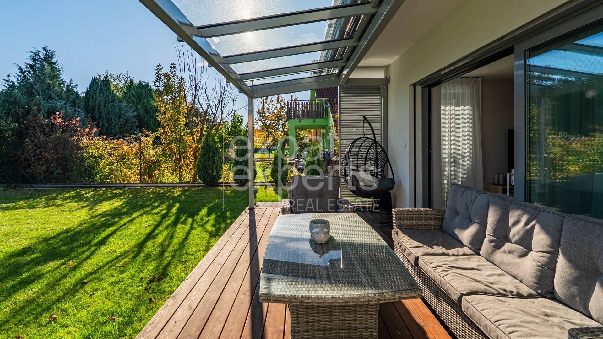 - sklenený prístrešok nad terasou, vrátane elektricky ovládaného tienenia nad prístreškom,