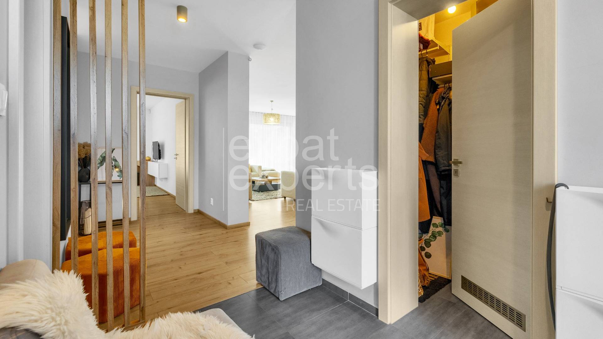 - drevené lamely opticky oddeľujúce schodisko a chodbu,