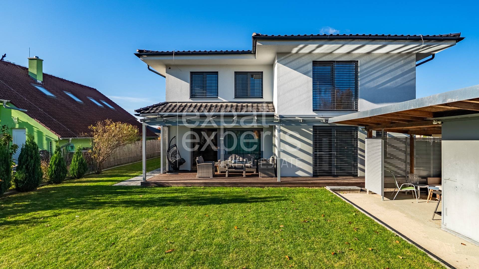 EXPAT EXPERTS | Exkluzívne | Predaj | Zariadený 7-izbový rodinný dom v mediteránskom štýle, s moderným interiérom, pre veľkú rodinu alebo viac-generačné bývanie alebo podnikanie, v Bernolákove, na Višňovej ulici. Dom s podlahovou plochou 240 m2, s terasou, prístavbou, a až 6 parkovacími státiami pri dome, pri súkromnom parku s možnosťou bezpečného hrania detí, v novšej zastavanej časti obce s rodinnými domami. Dve spálne na prízemí s bezbariérovým prístupom pre možnosť ubytovať aj imobilných príbuzných. Izba pri vstupnej hale vhodná aj na podnikanie.