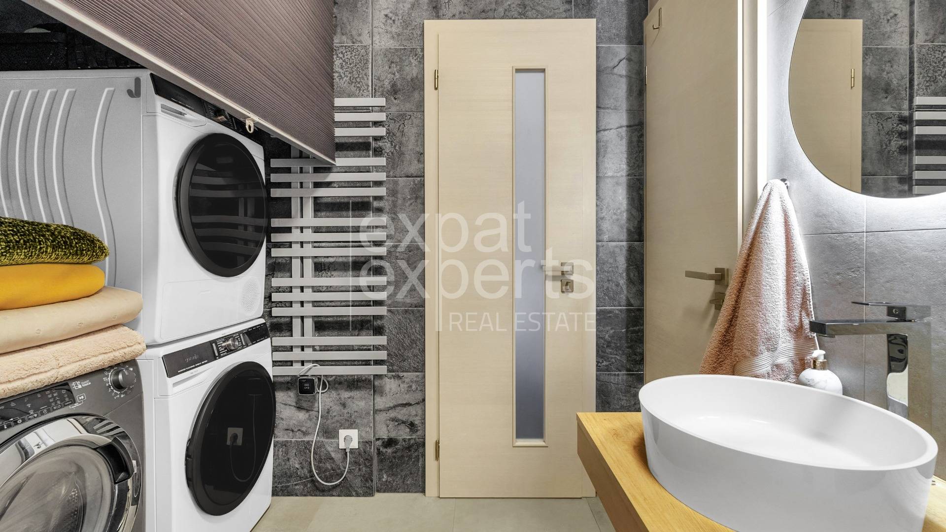 - biely rebríkový radiátor ISAN, ktorý je možné mimo vykurovacej sezóny zapnúť do elektriny,