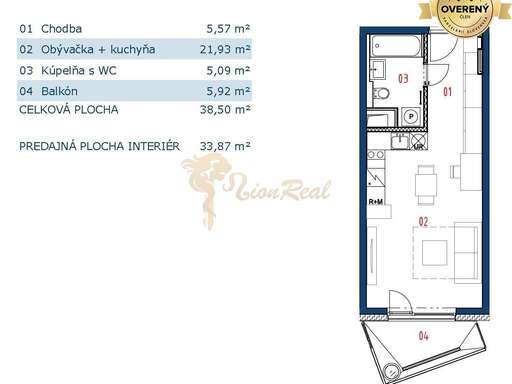 Plocha: 38.50 m², Zastavaná: neuvedené, Pozemok: neuvedené