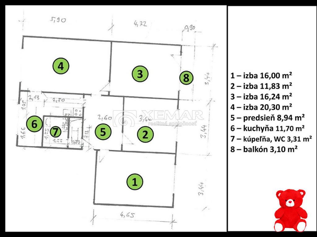 - Druh: 4 izbový byt